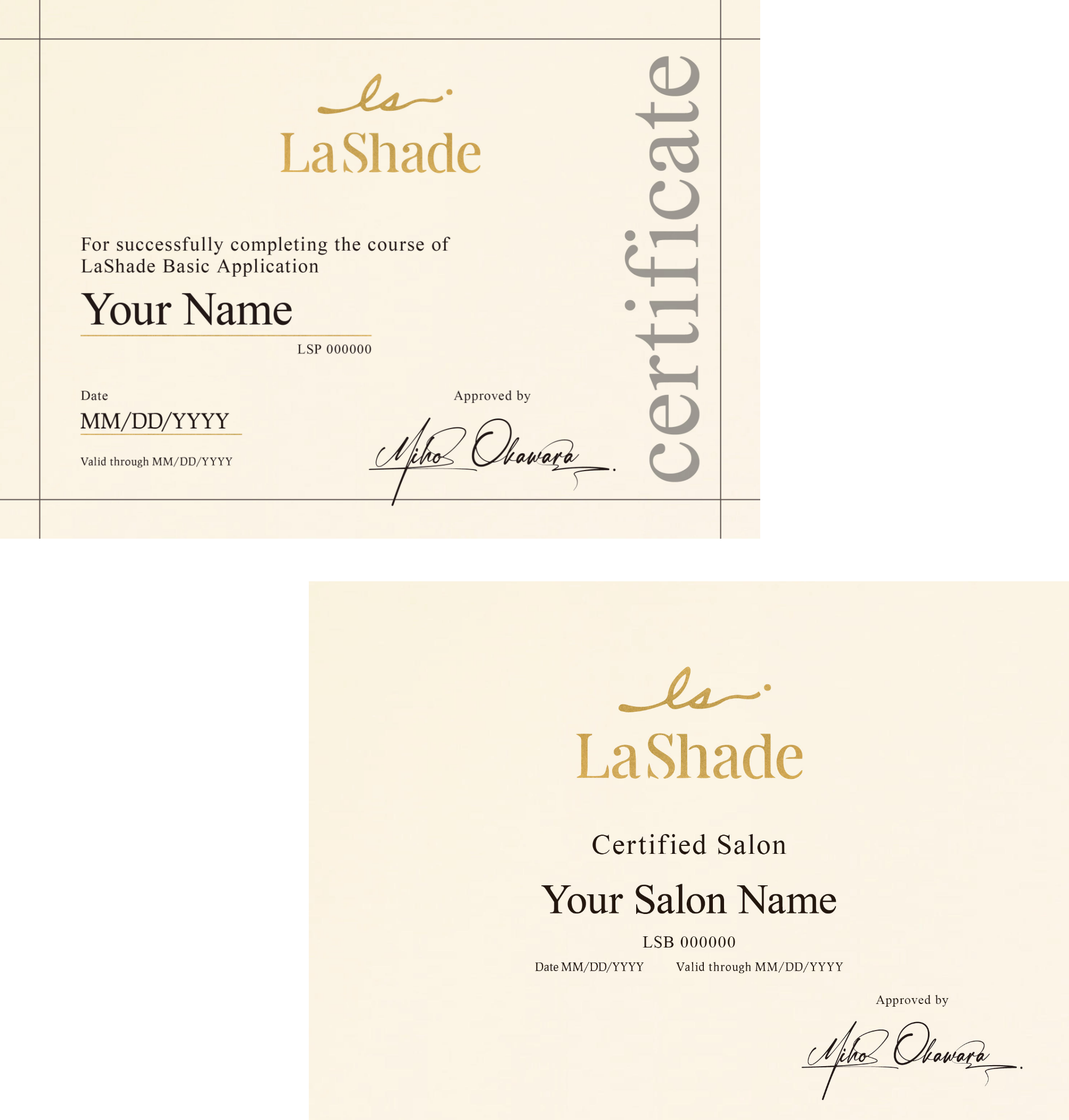認定テストに合格後、ディプロマをお送りいたします。認定後は、特典としてメンバーズ公式Instagramへの参加、LaShade商品をメンバーズ価格30%オフにてご購入いただけます。